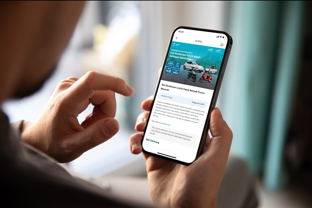 Pada program ini, nasabah Bank Mandiri bisa mendapatkan berbagai promo menarik saat membeli mobil maupun motor listrik melalui fitur Livin’ Sukha pada aplikasi Livin’ by Mandiri dan Kopra by Mandiri. Promo berlaku untuk pembelian mobil listrik merek Wuling, BMW dan Lexus, serta untuk motor listrik merek Gesits dan Volta.