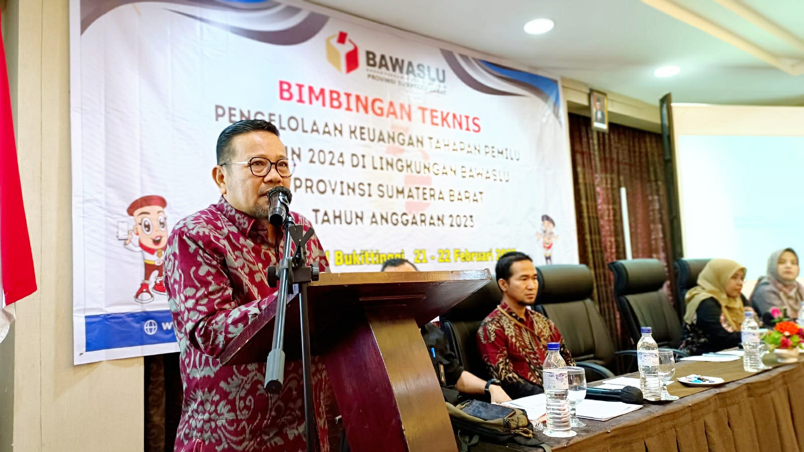 Kepala Sekretariat Bawaslu Provinsi Sumatera Barat, Karnalis Kamaruddin S.H., M.Si., dalam sambutannya saart membuka bimtek menyampaikan, peggunaan dana pemilu sampai ke tingkat kecamatan dan kelurahan, maka diperlukan perencanaan dan pengelolaan yang efektif dan efisien.