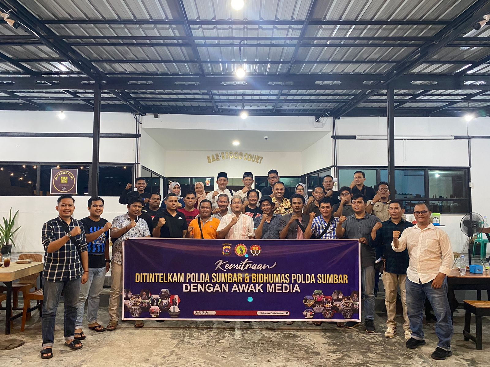 Padang, — Bidang Humas (Bidhumas) Polda Sumbar dan Ditintelkam, berbuka puasa bersama dengan sejumlah awak media di Barie Food Court, Padang, Rabu, (19/4). Kegiatan ini untuk menjalin kemitraan.