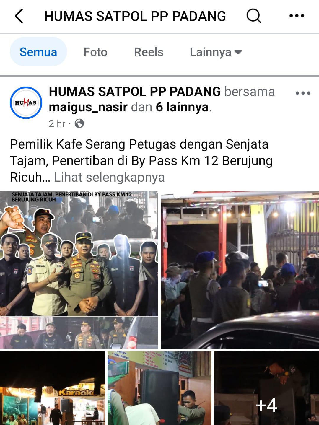 Padang – Pemilik sebuah kafe di kawasan Jalan Bypass Padang secara tegas membantah rilis Humas Satpol PP terkait kericuhan saat razia tengah malam, bahkan menyebut kronologis yang disebar di media sosial sebagai hoaks dan upaya pembelaan diri aparat atas dugaan tindakan kekerasan di lapangan.