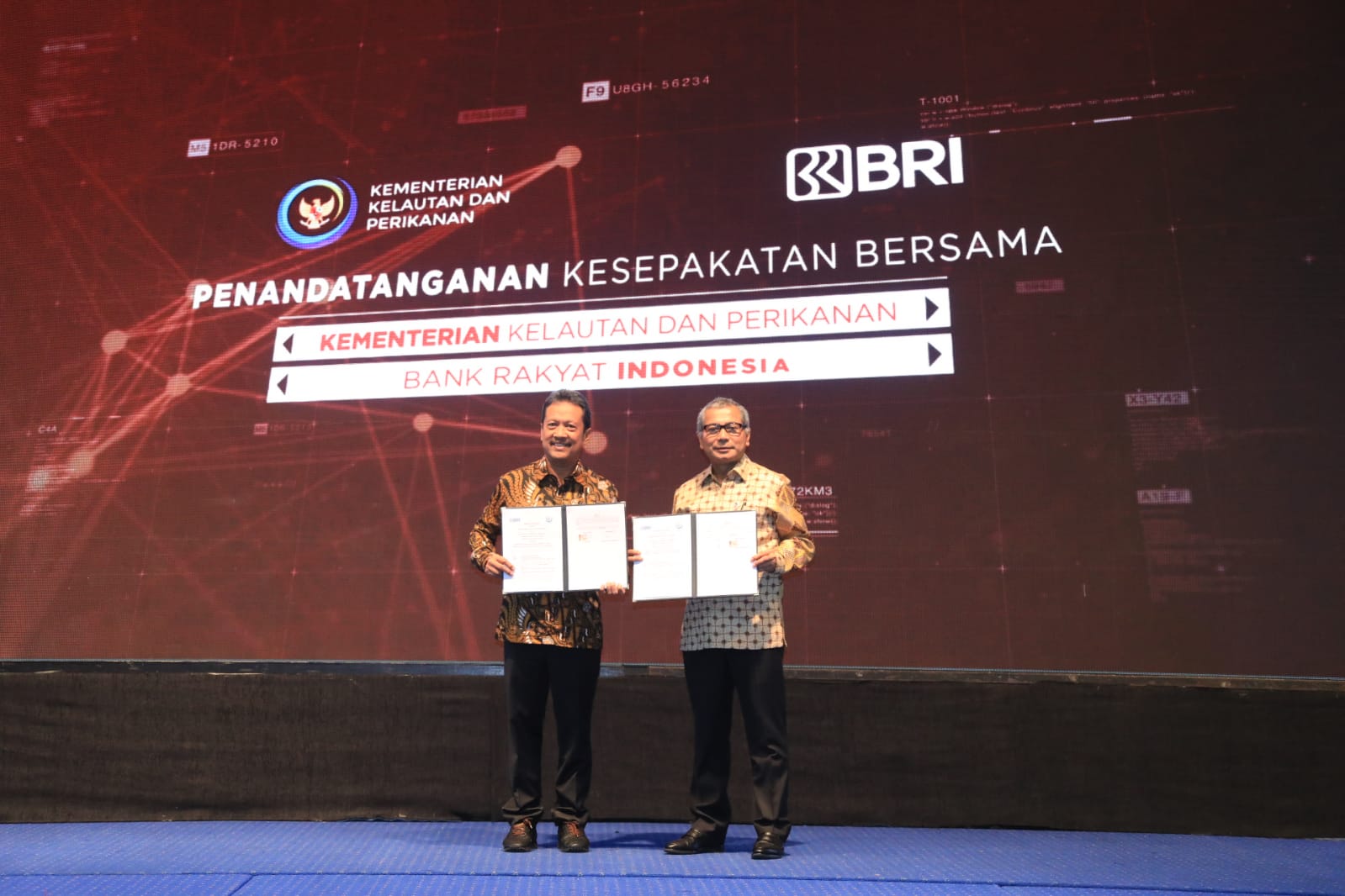 Penandatanganan tersebut dilakukan Direktur Utama BRI Sunarso dan Menteri Kelautan & Perikanan RI Sakti Wahyu Trenggono. Turut hadir dalam acara tersebut perwakilan Kementerian Koperasi dan UMKM RI, Perwakilan BPOM, dan jajaran pejabat lainnya. Terkait kerja sama ini, BRI siap mendukung program KKP, yakni Ekonomi Biru untuk Indonesia Maju.