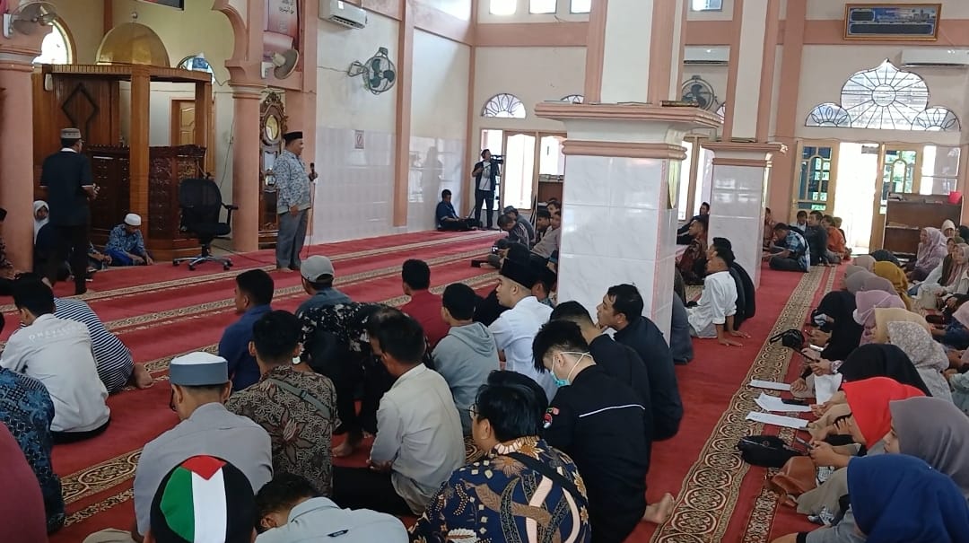 Kabupaten Solok, – Komisi Pemilihan Umum (KPU) Kabupaten Solok sosialisasikan pelaksanaan Pemilihan Umum (Pemilu) 2024 saat Tabligh Akbar memperingati Isra Mikraj menceramah Uztat Zukifli Kepala Kantor Kemenag Kabupaten Solok di Masjid Raya Sumani, Kabupaten Solok, Sumatera Barat, Rabu (8/2/2024).